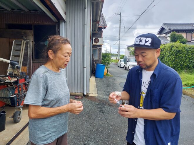 洲田園さんの彦坂さんから大葉ペーストの試食
