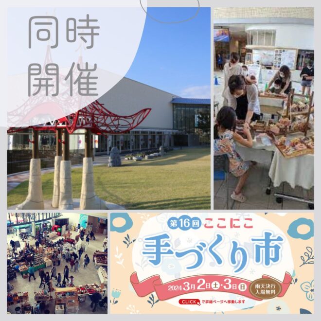 当日は、ココニコで「手づくり市」が開催されています。合わせてお楽しみください。